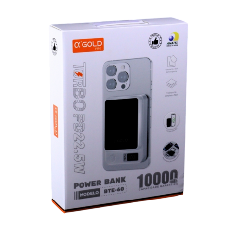 CARREGADOR PORTÁTIL POR INDUÇÃO GOLD BTE-60 10.000 MAH